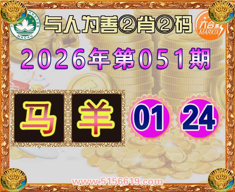 051期:〖与人为善〗 🥰②肖②码🥰【羊】【01.24】开:马01