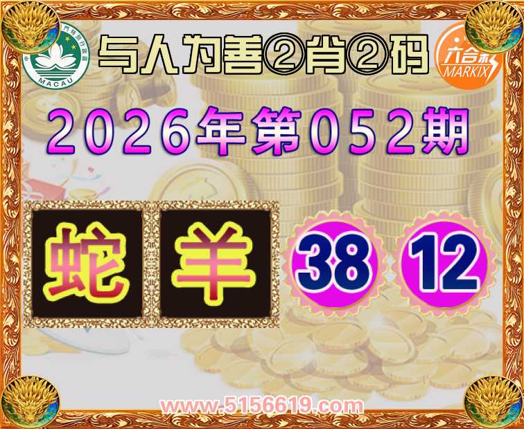 052期:〖与人为善〗 🥰②肖②码🥰【羊】【38.12】开:蛇38