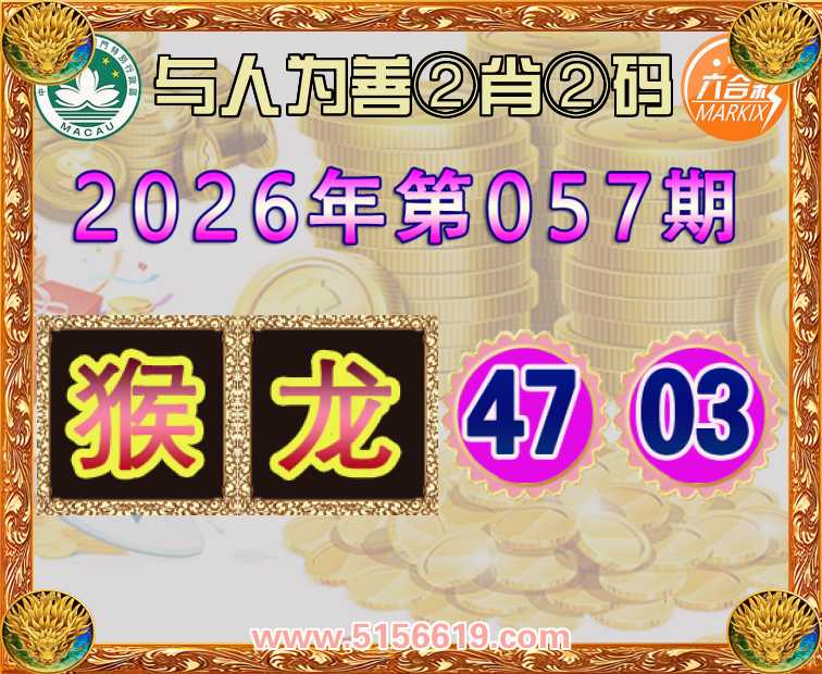 057期:〖与人为善〗 🥰②肖②码🥰【龙】【47.03】开:猴23准上榜高手