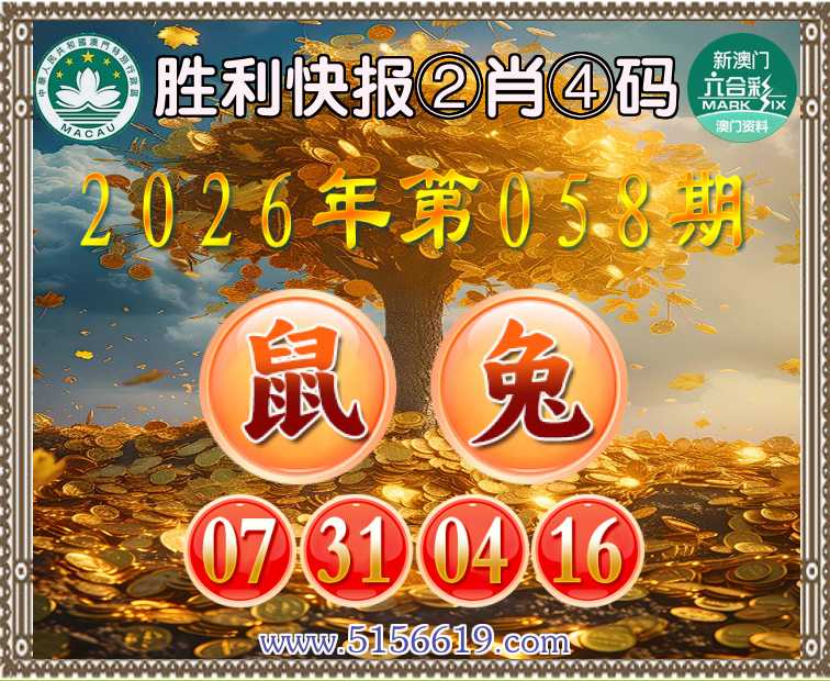 058期:《胜利快报》 🥫②肖④码🥫【兔】【07.31.04.16】开:鼠31准上榜高手